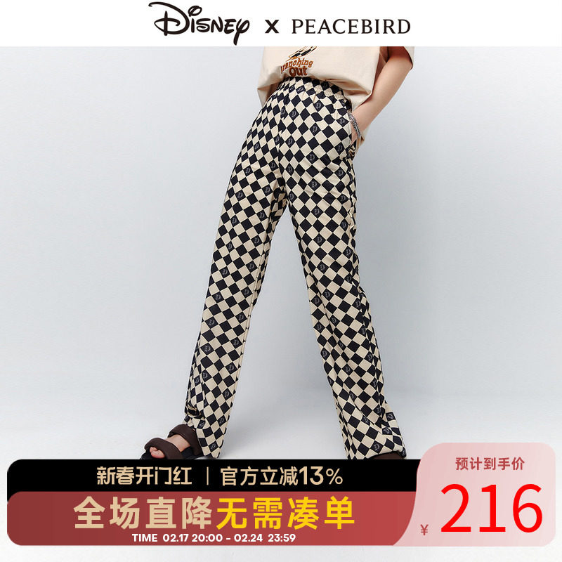 匹诺曹联名太平鸟女装高腰直筒裤2023年夏季格纹阔腿裤A7GBD2A98