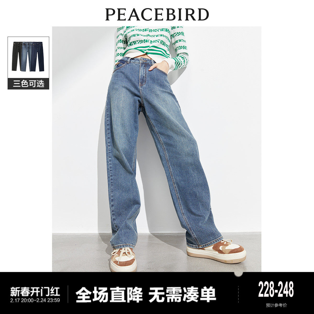 太平鸟女装阔腿直筒牛仔裤春宽松遮肉撞色复古牛仔裤AWHAD1204