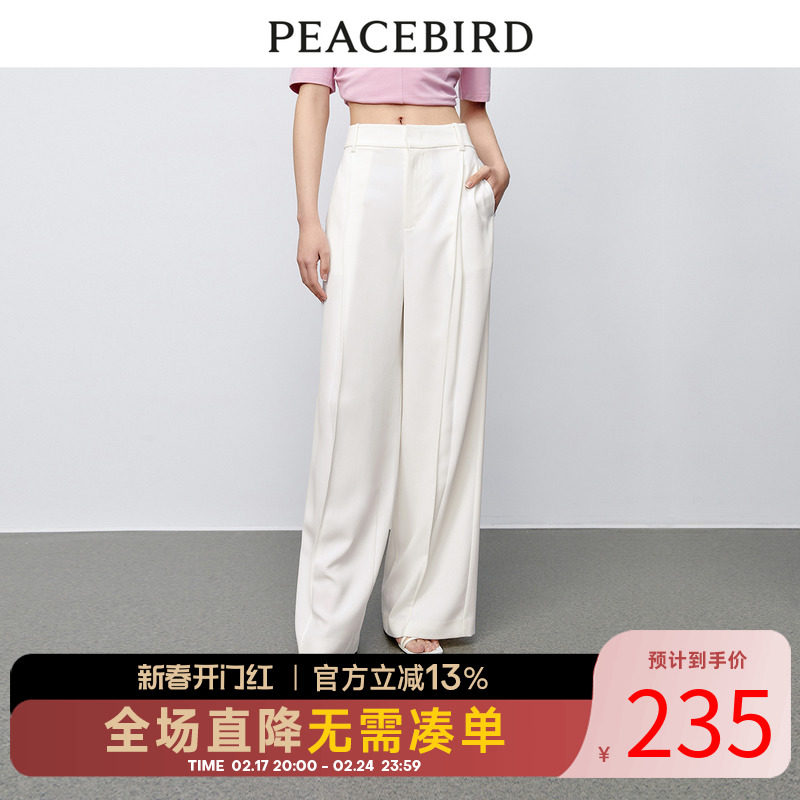 太平鸟女装高腰阔腿西装裤2023夏季宽松显瘦白色直筒裤A8GBD2102