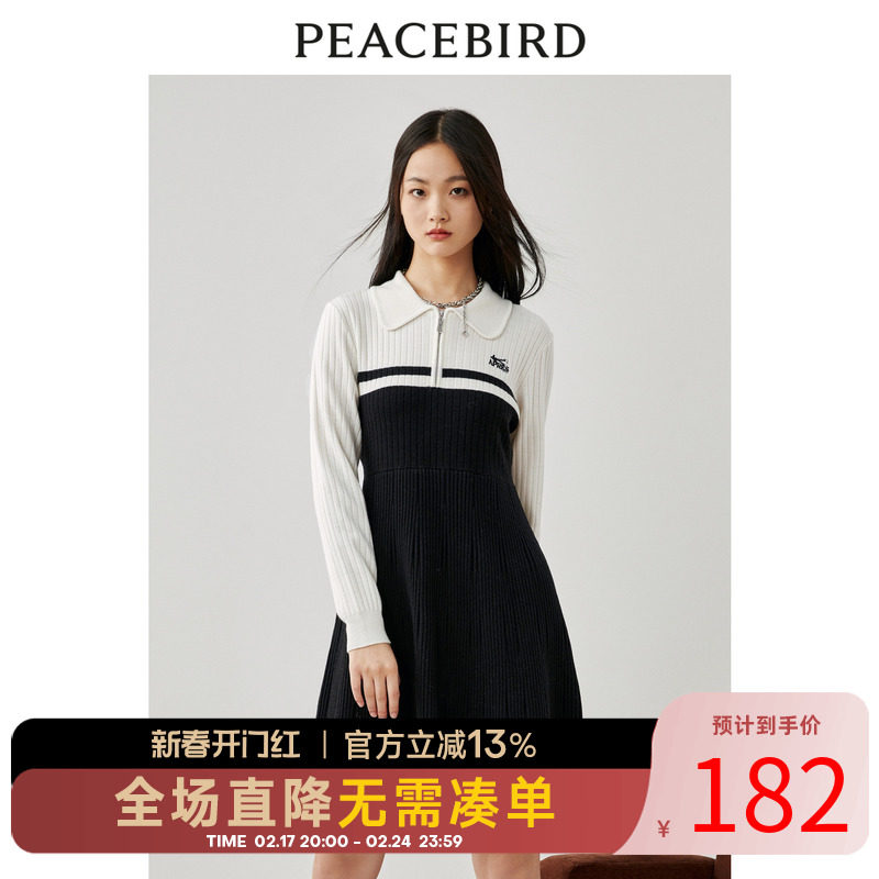 太平鸟女装冬季连衣裙秋冬新款打底修身撞色毛衫长裙子A8FAC4350