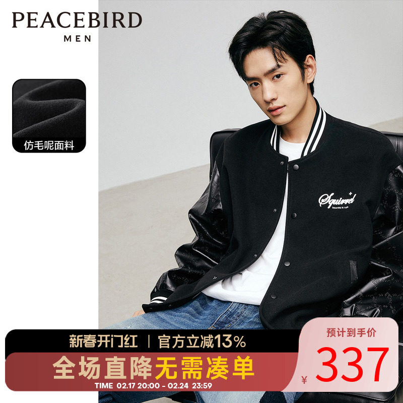太平鸟男装2023秋季新款PU拼接休闲夹克男士棒球领外套BWBCD3102
