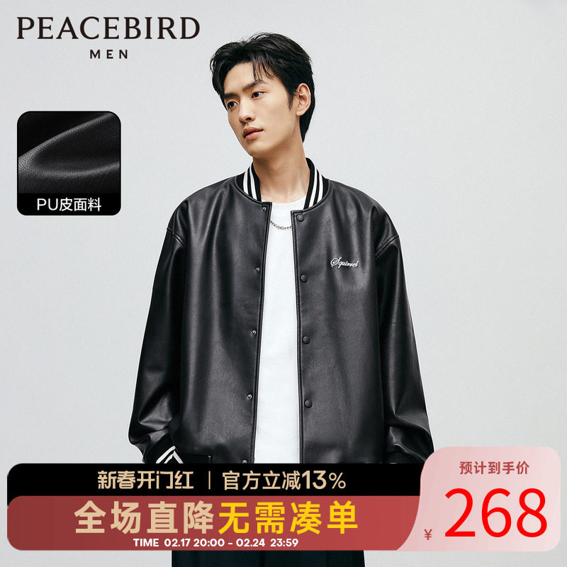太平鸟男装pu皮夹克23年秋季新款刺绣宽松棒球领外套男BWBCD3103