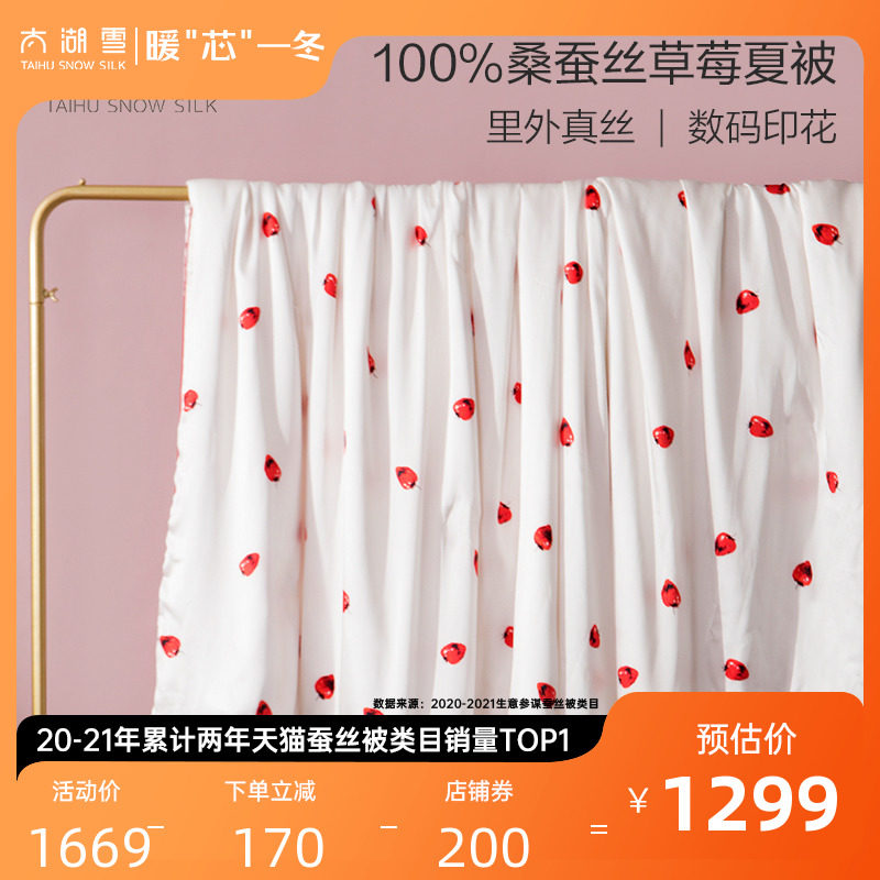 太湖雪蚕丝被100%桑蚕丝草莓夏凉被真丝空调被夏季薄款被套可水洗