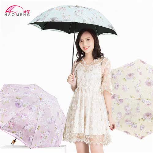 好梦太阳伞女晴雨两用伞蕾丝女神遮阳伞防晒防紫外线二折折叠雨伞