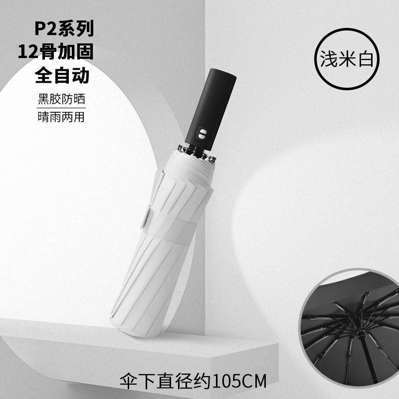 广告伞全自动12骨雨伞三折叠黑胶太阳伞晴雨两用伞便携创意时尚款