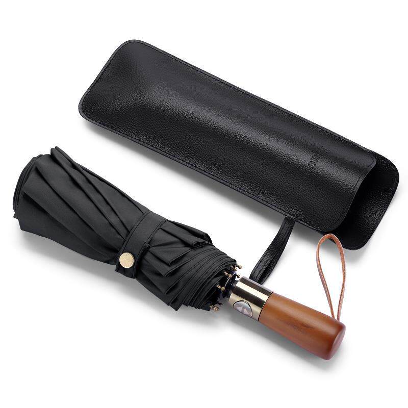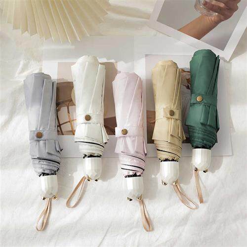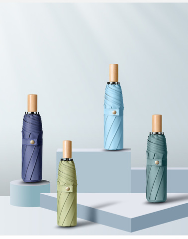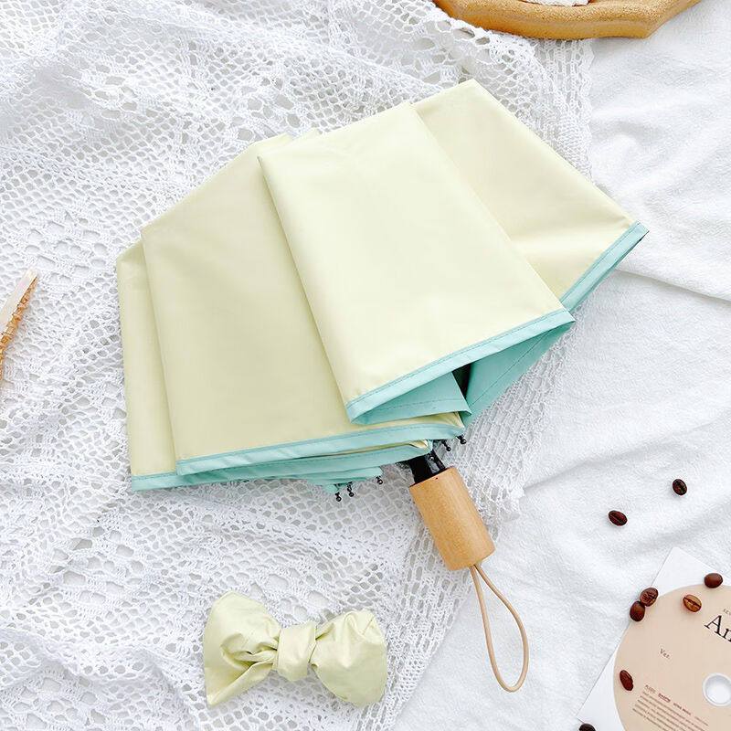 简约手柄遮阳伞太阳伞黑胶小清新素色实木加印logo折广告雨伞三折
