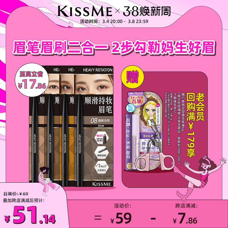 kissme眉笔 持久不易脱色染眉膏女眉粉野生眉毛雨衣kiss me奇士美