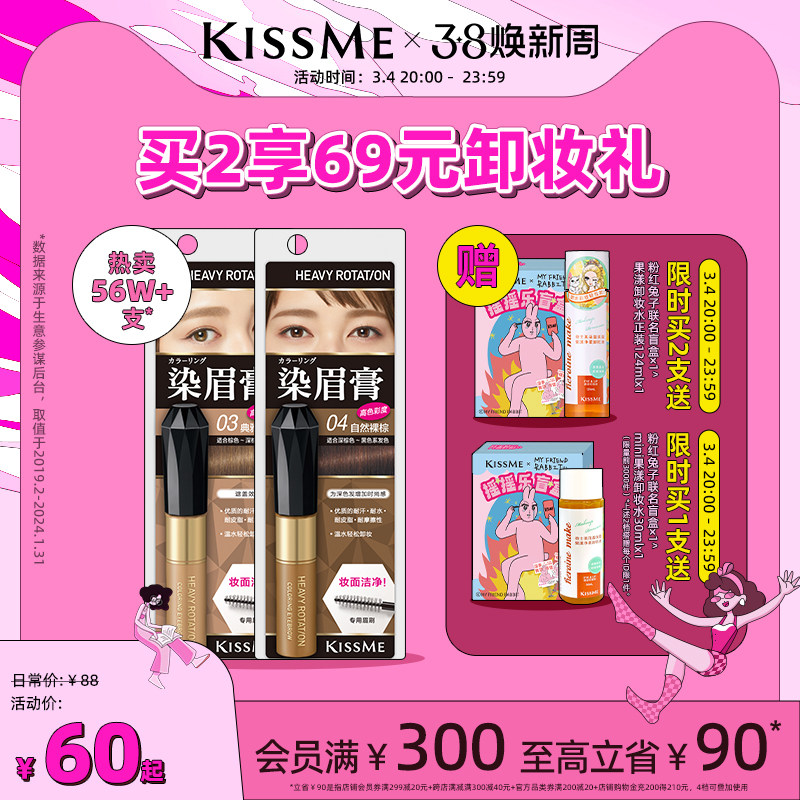 kissme染眉膏 持久不易脱色眉笔女眉粉棕色浅色0304kiss me奇士美