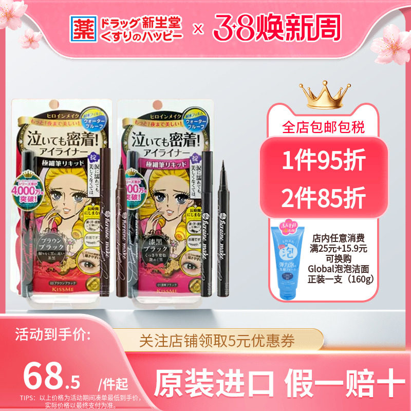 KISSME奇士美眼线液笔日本原装进口极细防晕黑色/黑棕色