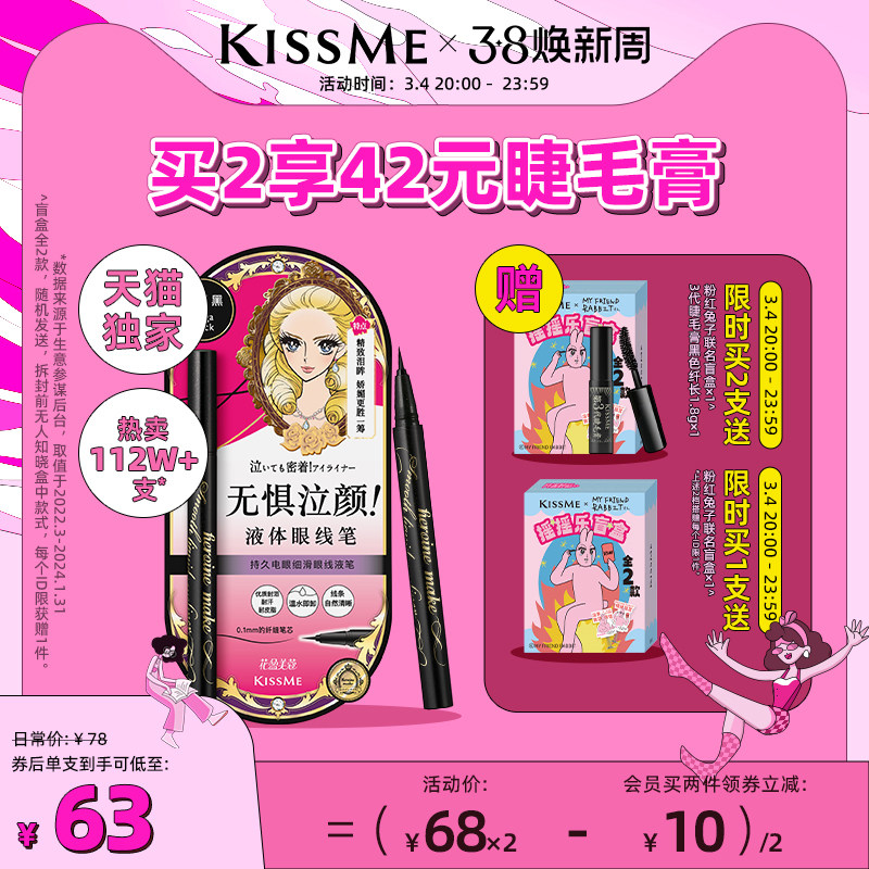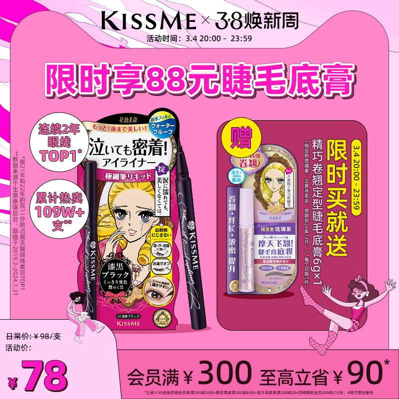 【联名款】kissme眼线液笔 防水不易晕染持久极细卧蚕笔kiss me