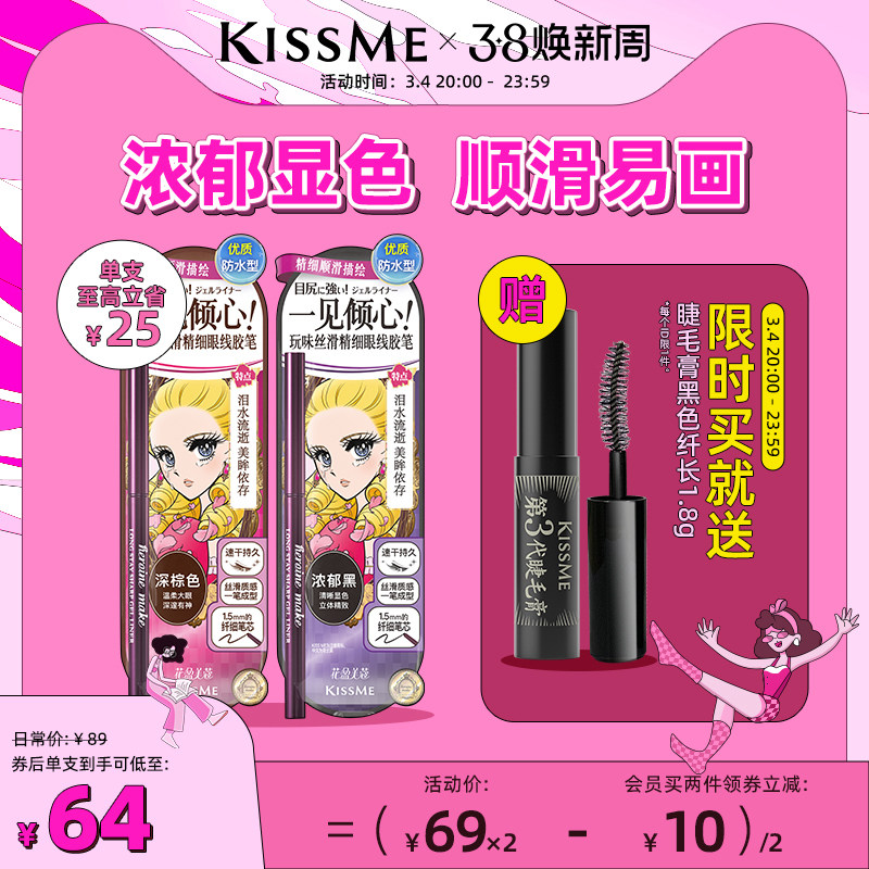 KISSME/奇士美柔妆纤细眼线胶笔黑棕色耐水汗不易晕染持久新手膏