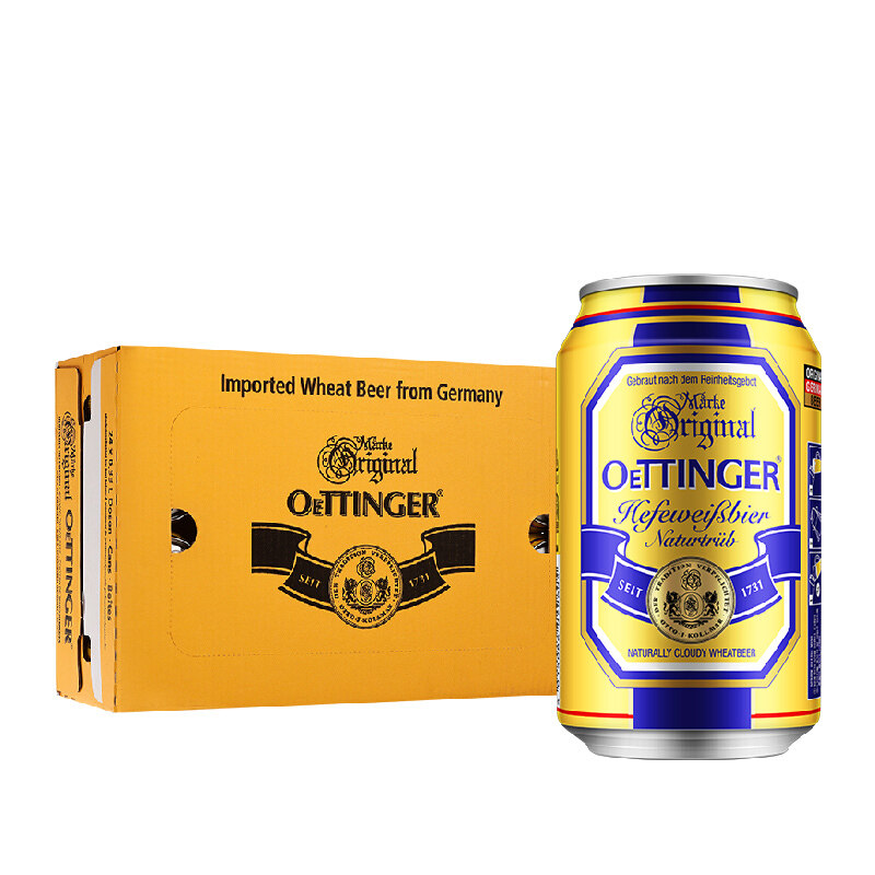 德国进口啤酒 奥丁格(OETTINGER)小麦白啤酒 330ml*24瓶整箱装