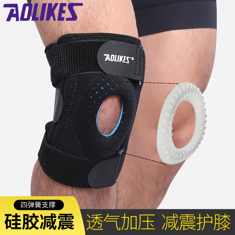 直销奥力克斯透气运动硅胶护膝4弹簧支撑登山护膝男女跑步骑行篮