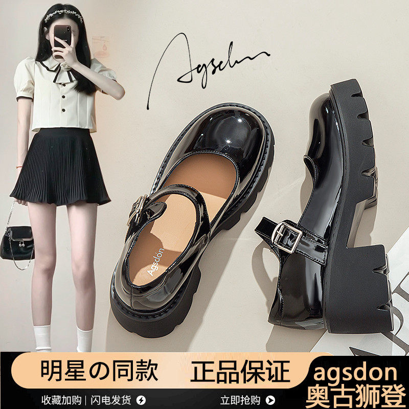 奥古狮登玛丽珍鞋女2023夏新款凉鞋单鞋日系jk厚底小皮鞋黑高跟鞋