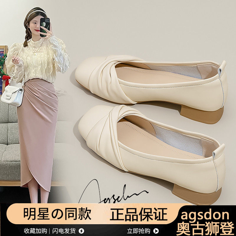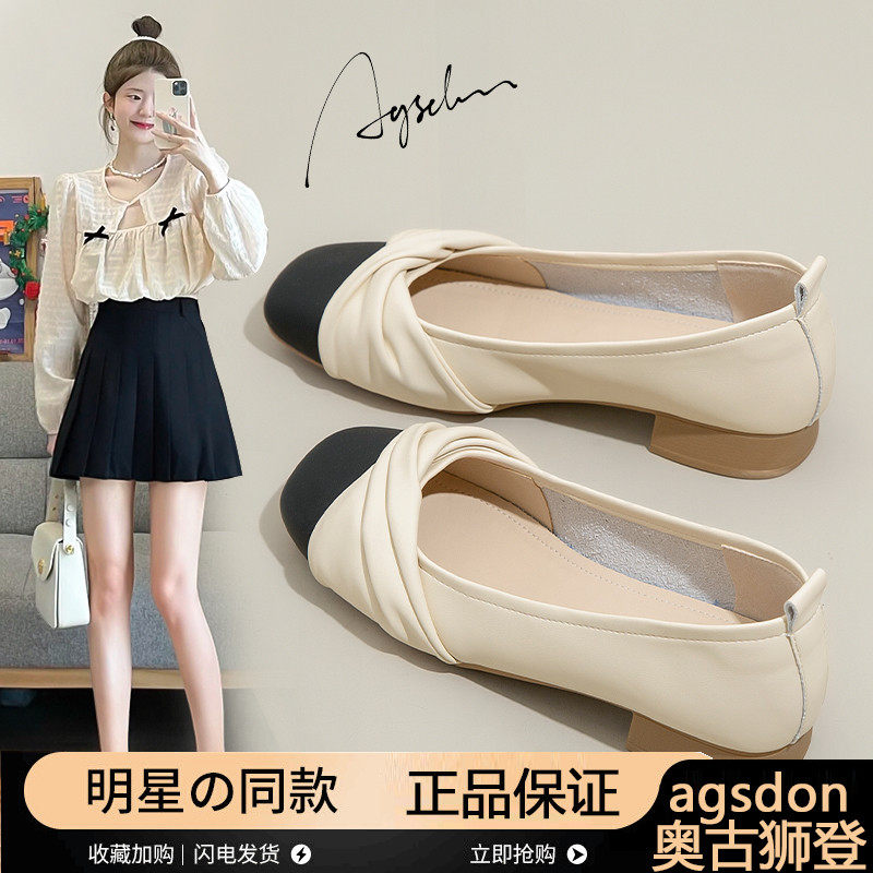 奥古狮登玛丽珍女鞋秋单鞋法式晚晚风包头凉鞋温柔平底薄款小皮鞋