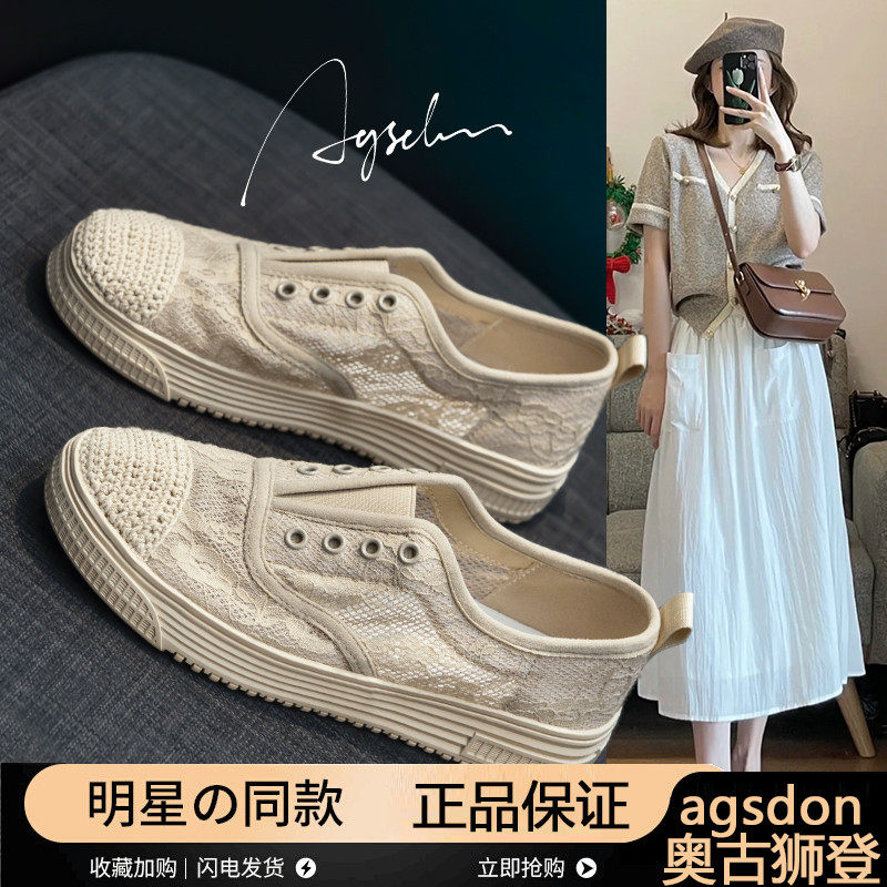 奥古狮登渔夫鞋女2023新款夏季透气懒人一脚蹬凉鞋小香风单鞋网鞋