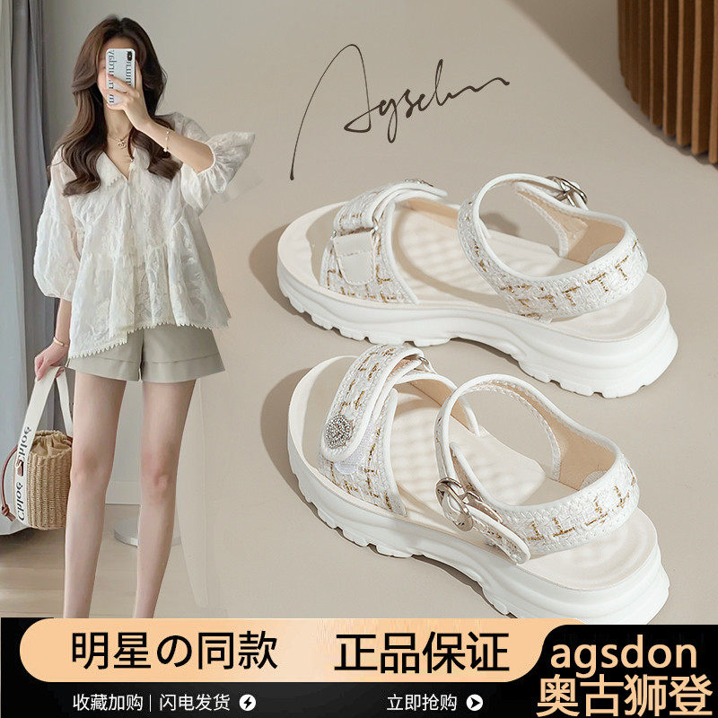 奥古狮登运动凉鞋女2023年新款百搭小香风魔术贴夏季外穿防滑网红