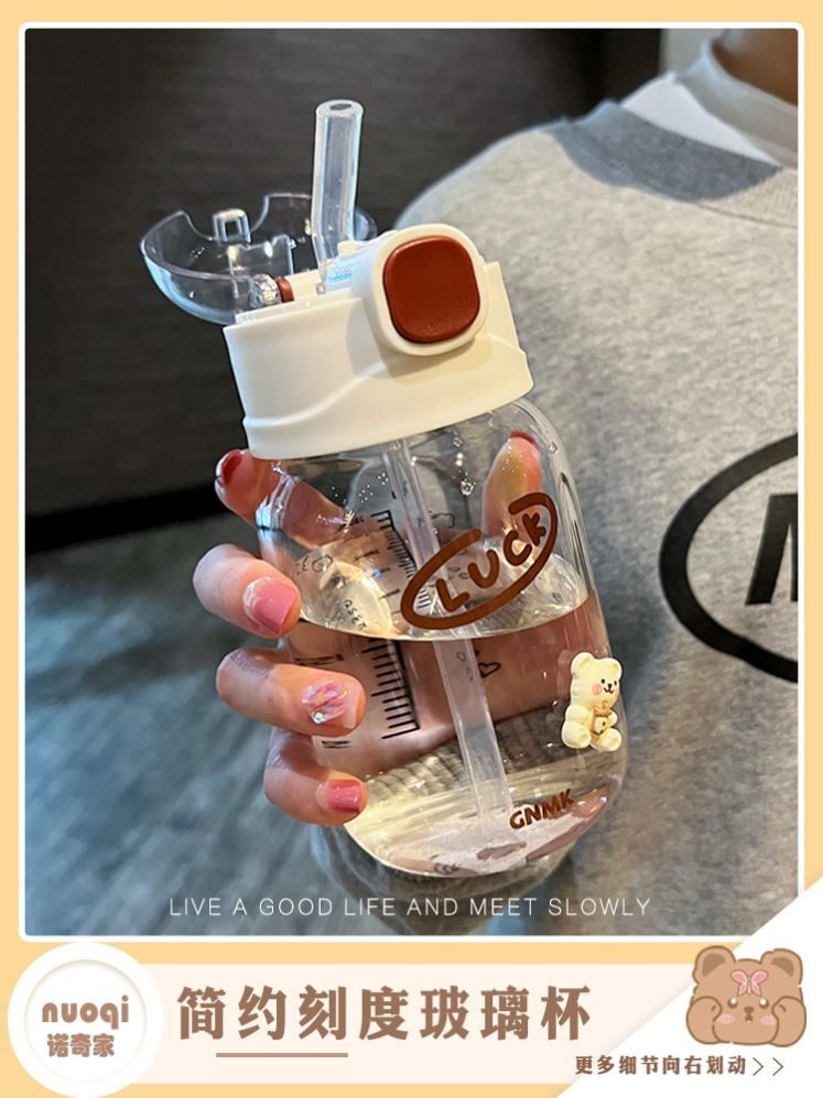 杯子女2022新款吸管玻璃杯耐高温可爱水杯女生高颜值夏季小巧便携
