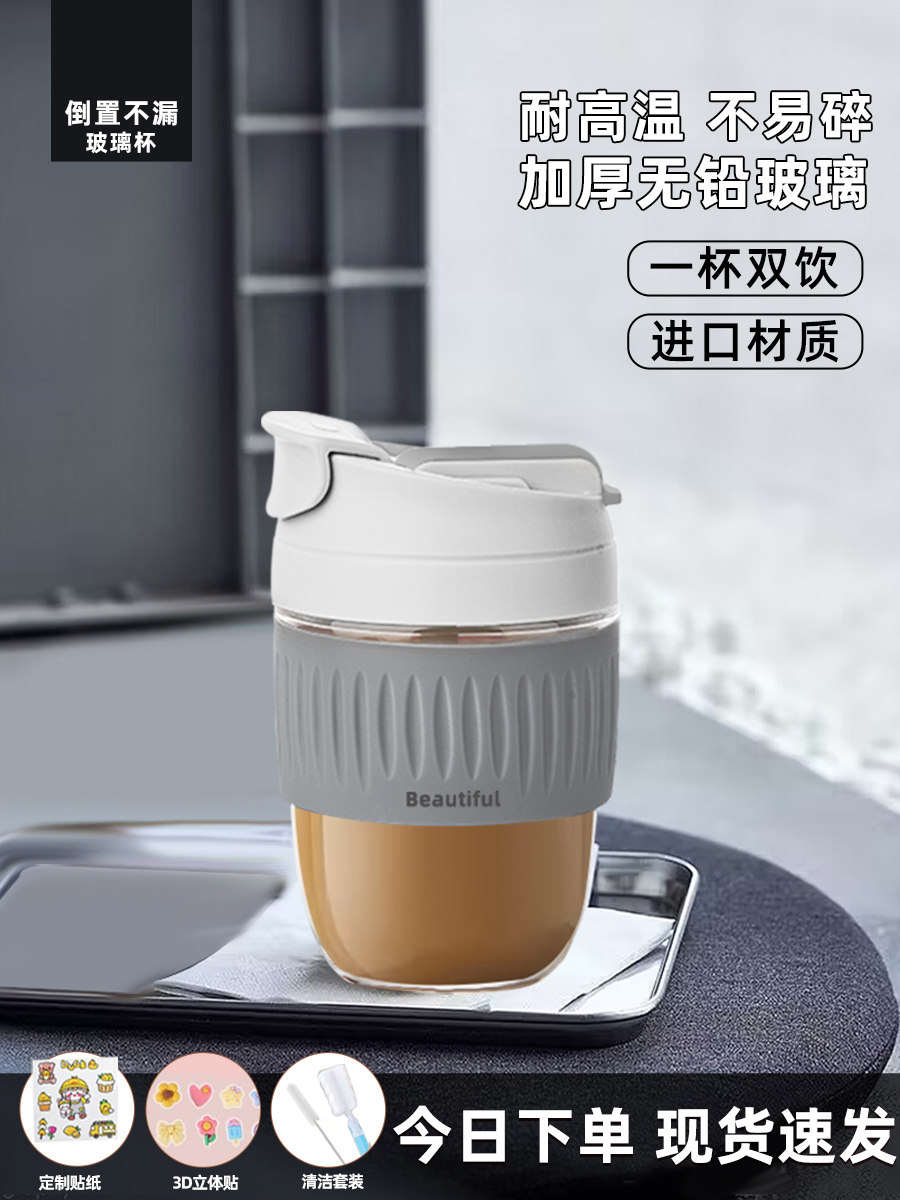 夏季水杯颜值高双饮玻璃杯小巧便携女生2023新款夏天吸管杯小容量