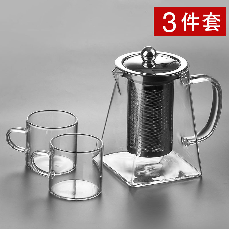 玻璃茶壶套装耐高温烧水壶煮茶过滤红茶泡茶器好看花茶壶方形茶具