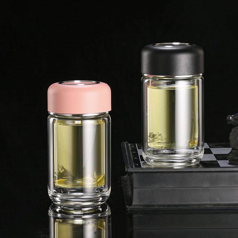 【精品好物】双层玻璃杯加厚隔热花茶女士水杯小巧便携茶杯男士矮