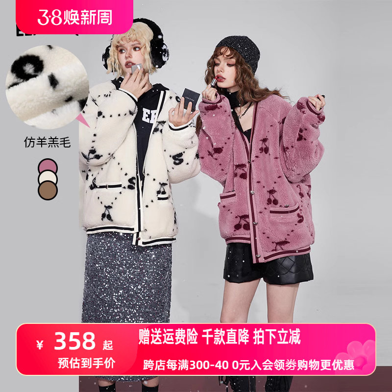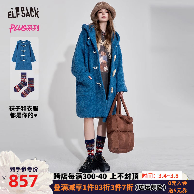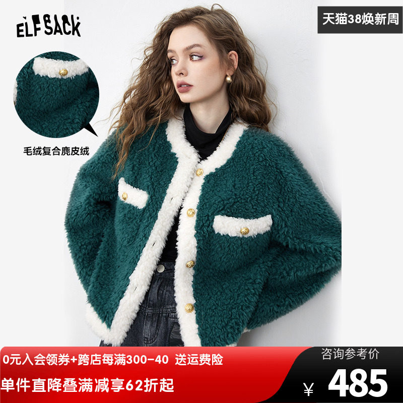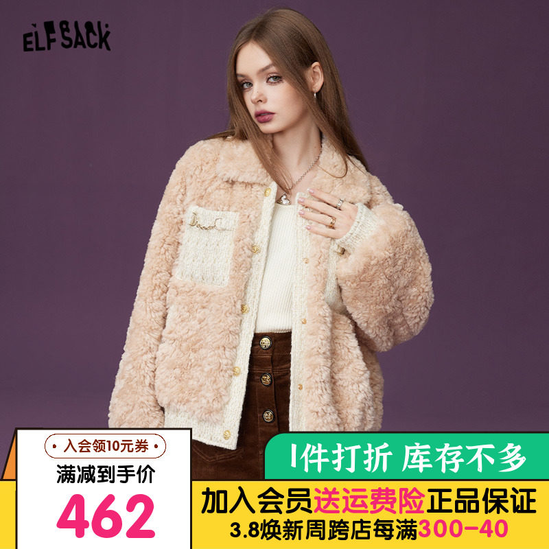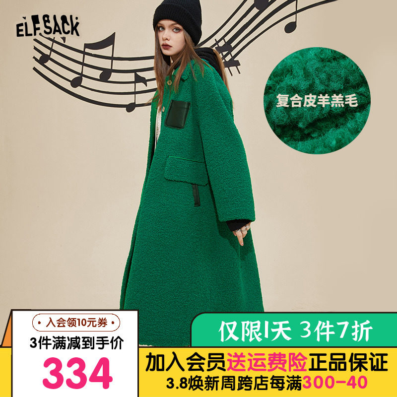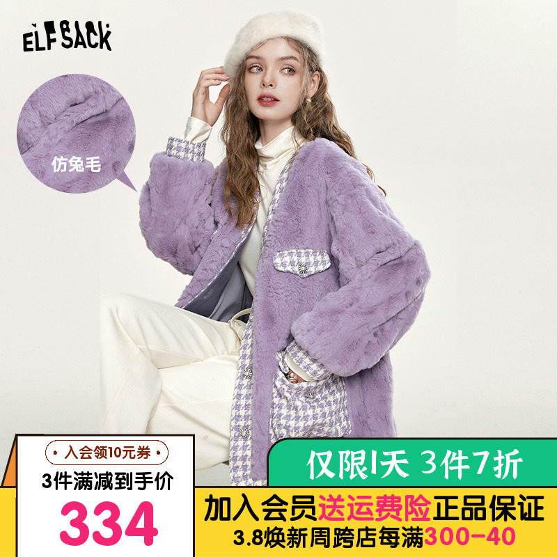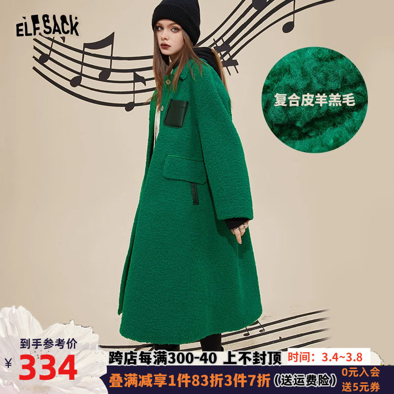 妖精的口袋毛茸茸外套女2023冬季新款小个子仿羊羔毛中长款呢大衣