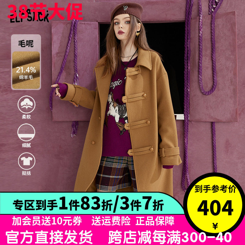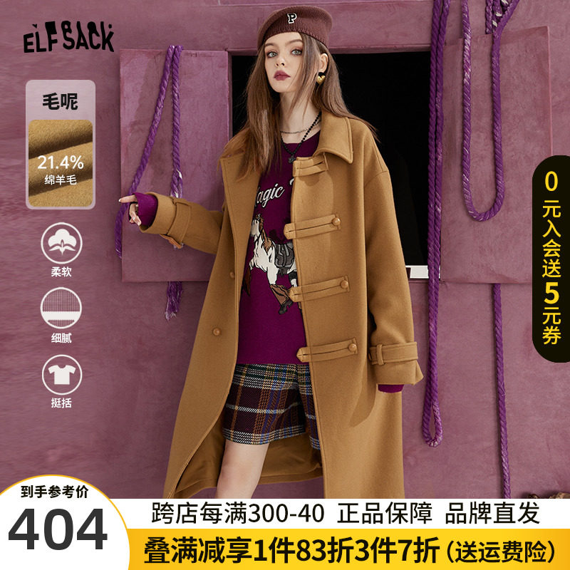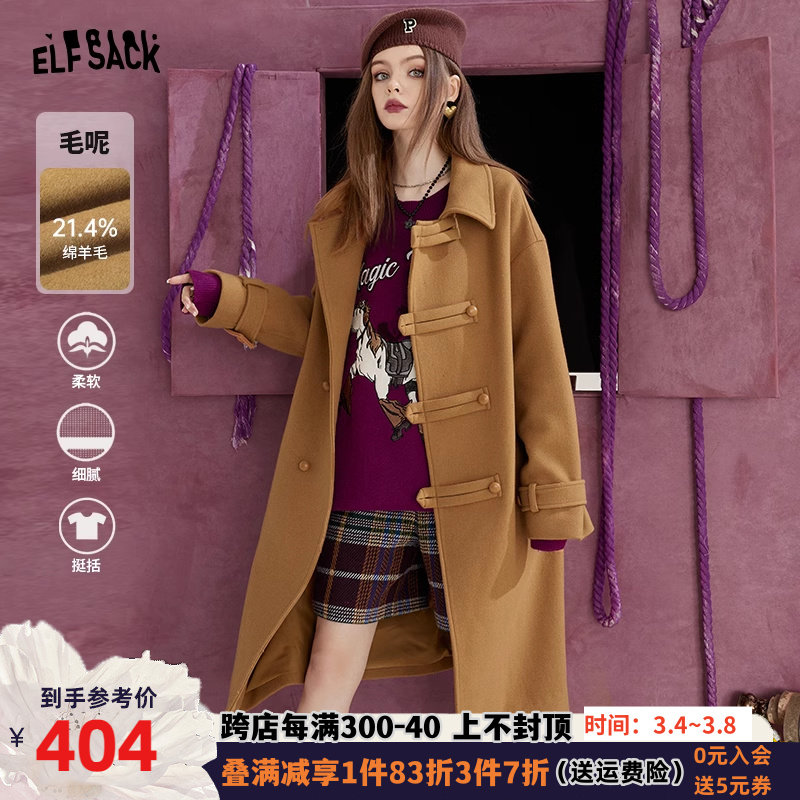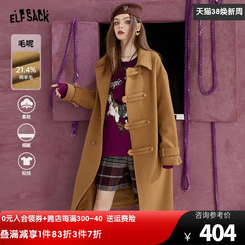 妖精的口袋牛角扣毛呢大衣女2023冬季新款英伦风长款宽松呢子外套