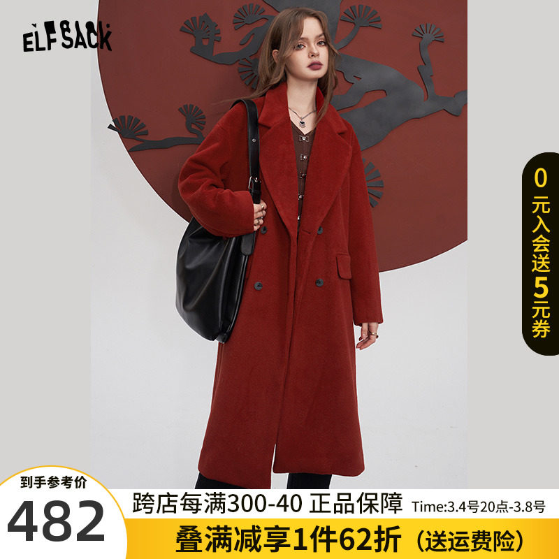 妖精的口袋红色双面呢大衣女2022秋冬季新款小个子中长款毛呢外套