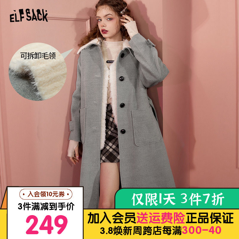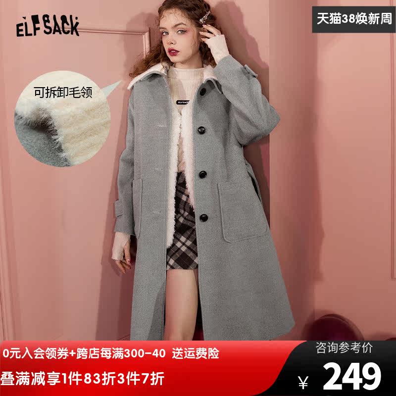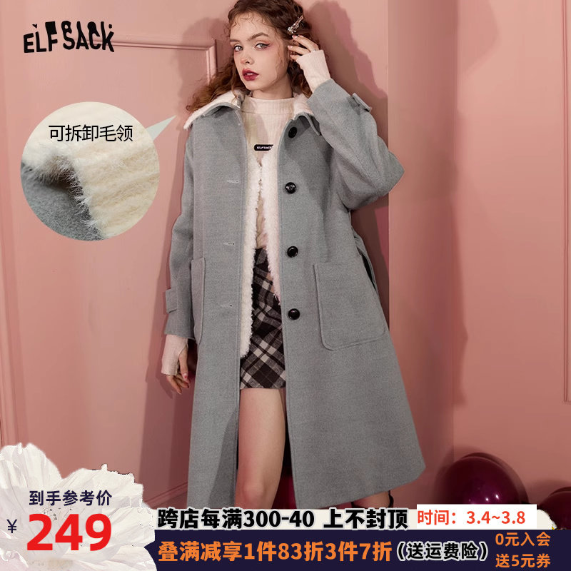 妖精的口袋灰色中长款羊毛毛呢外套女2023冬季新款小个子呢子大衣