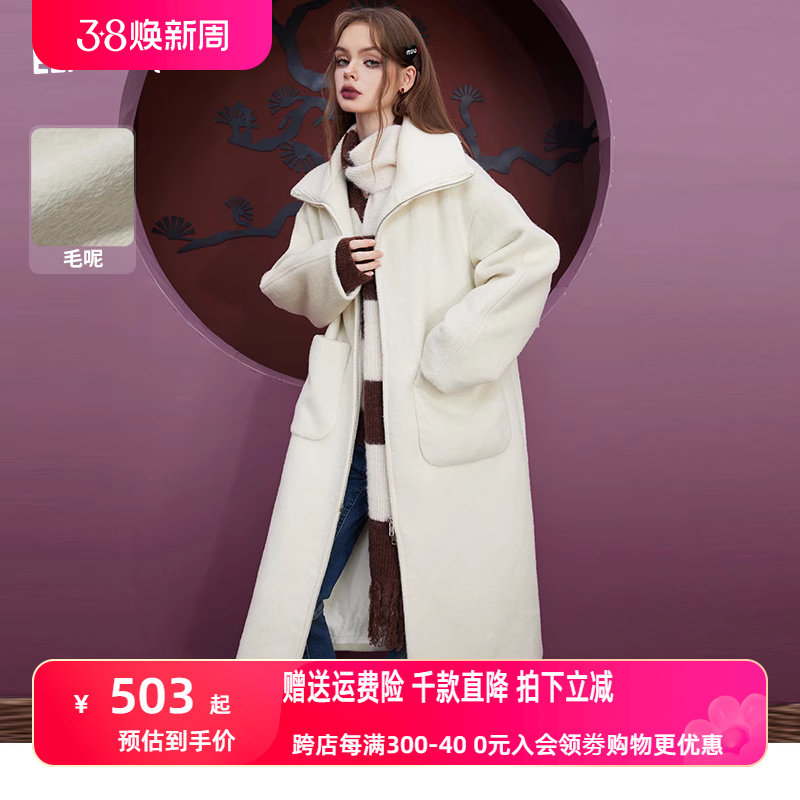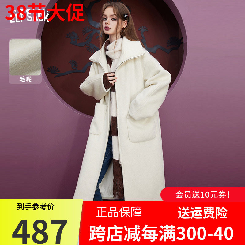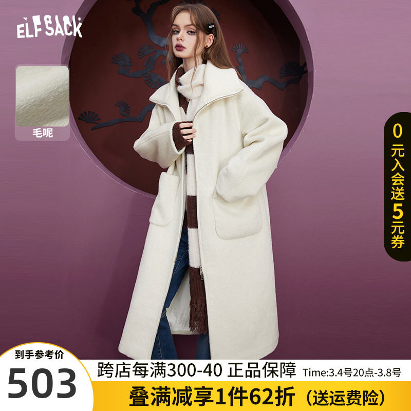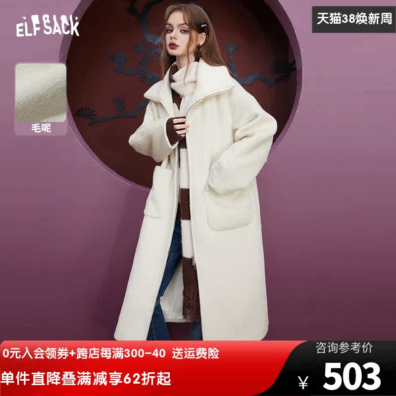 妖精的口袋白色中长款毛呢外套女2023冬季新款宽松加厚英伦呢大衣