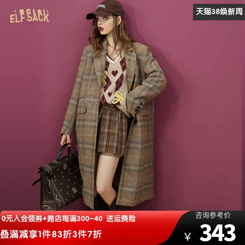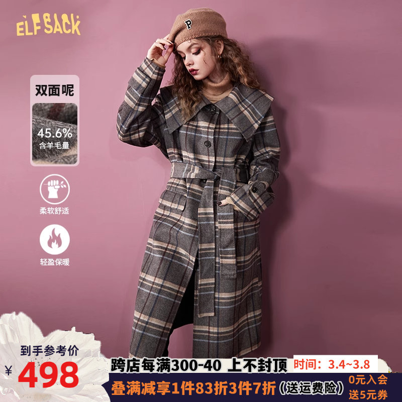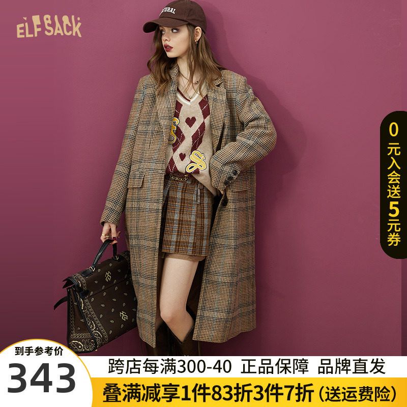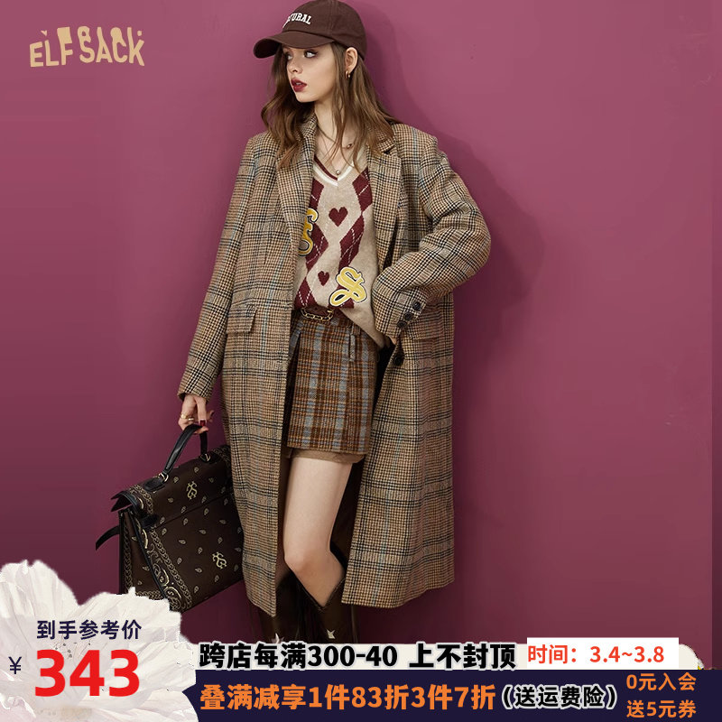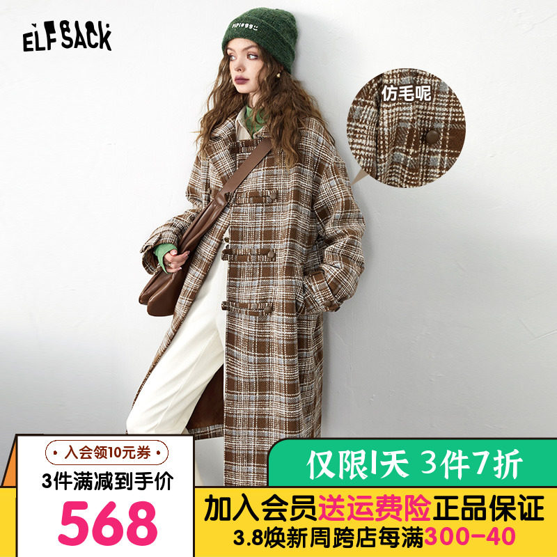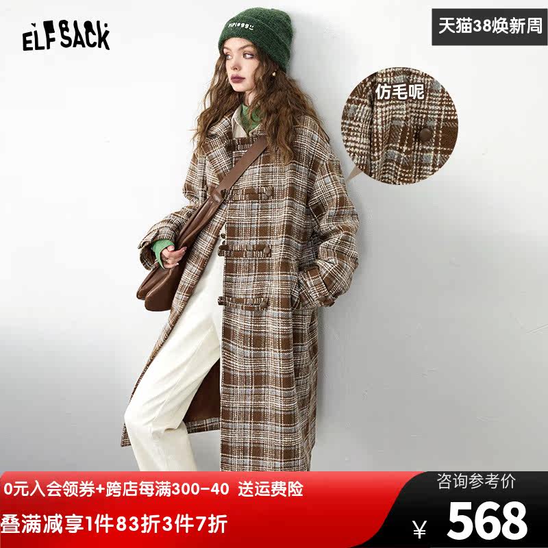 妖精的口袋棕色英伦格纹大衣女2022秋冬季新款加厚高级感长款外套