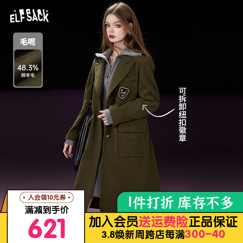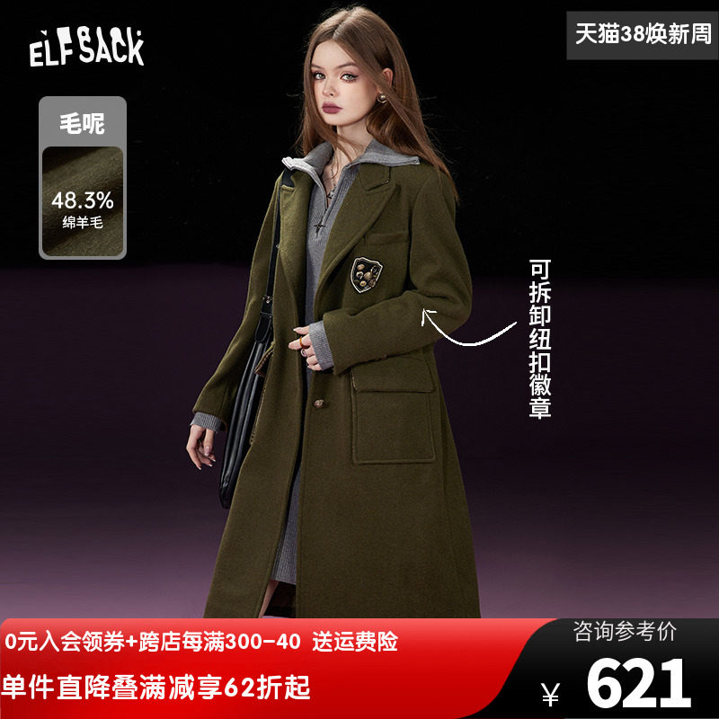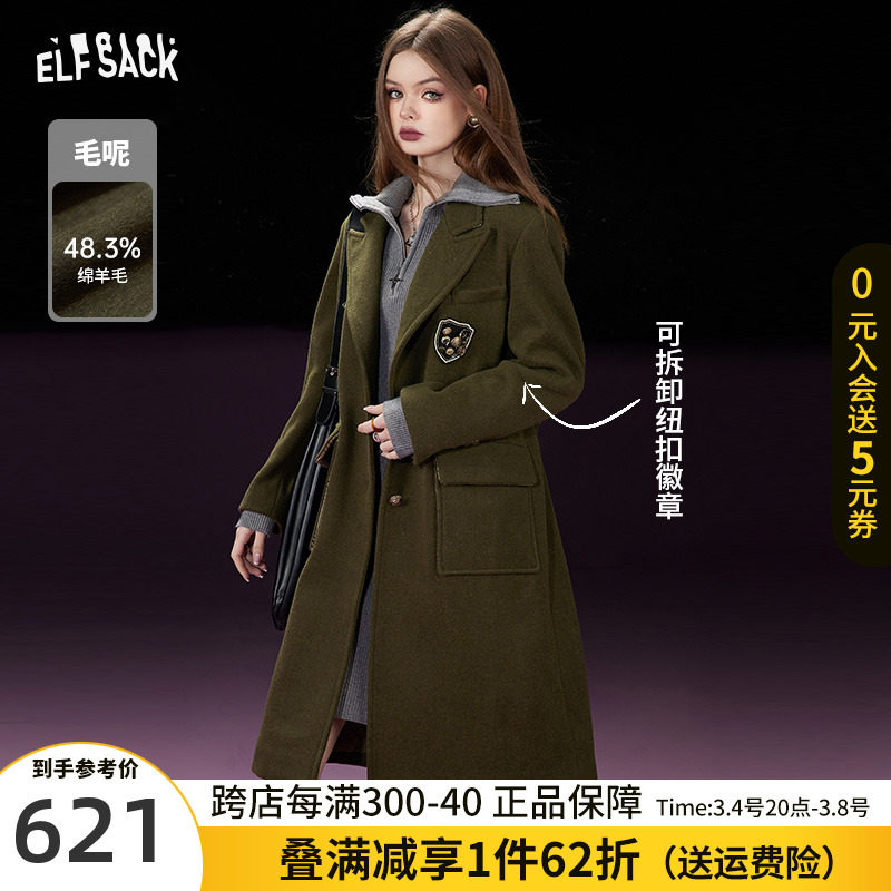 妖精的口袋中长款毛呢外套女2023冬季新款宽松气质加厚英伦呢大衣