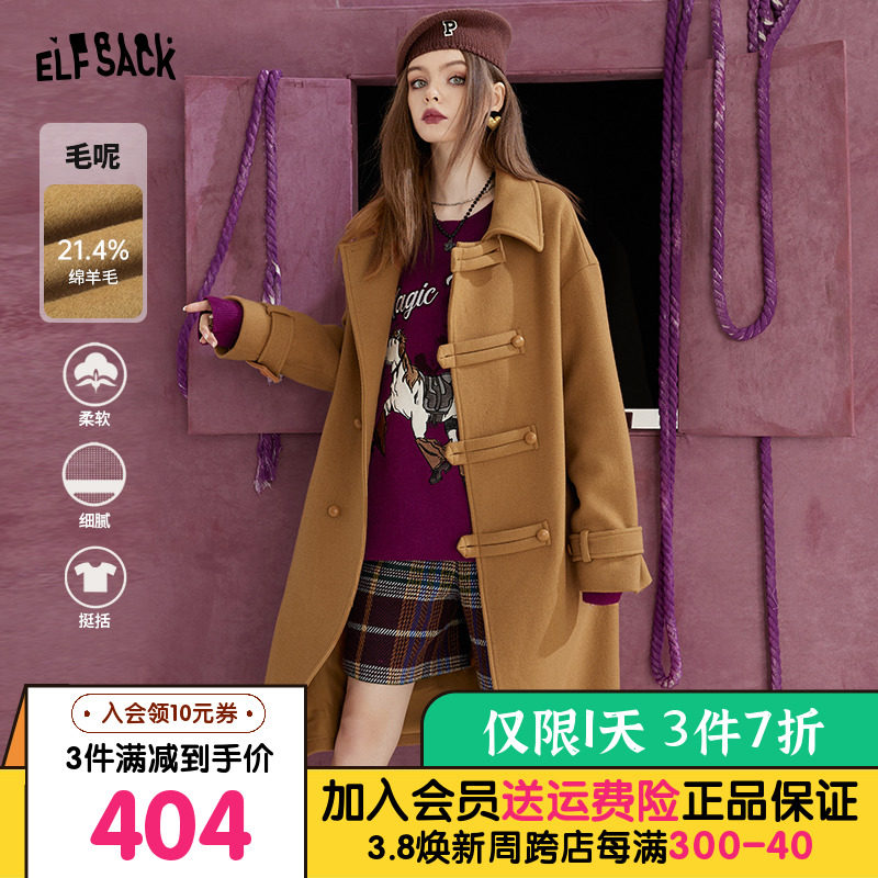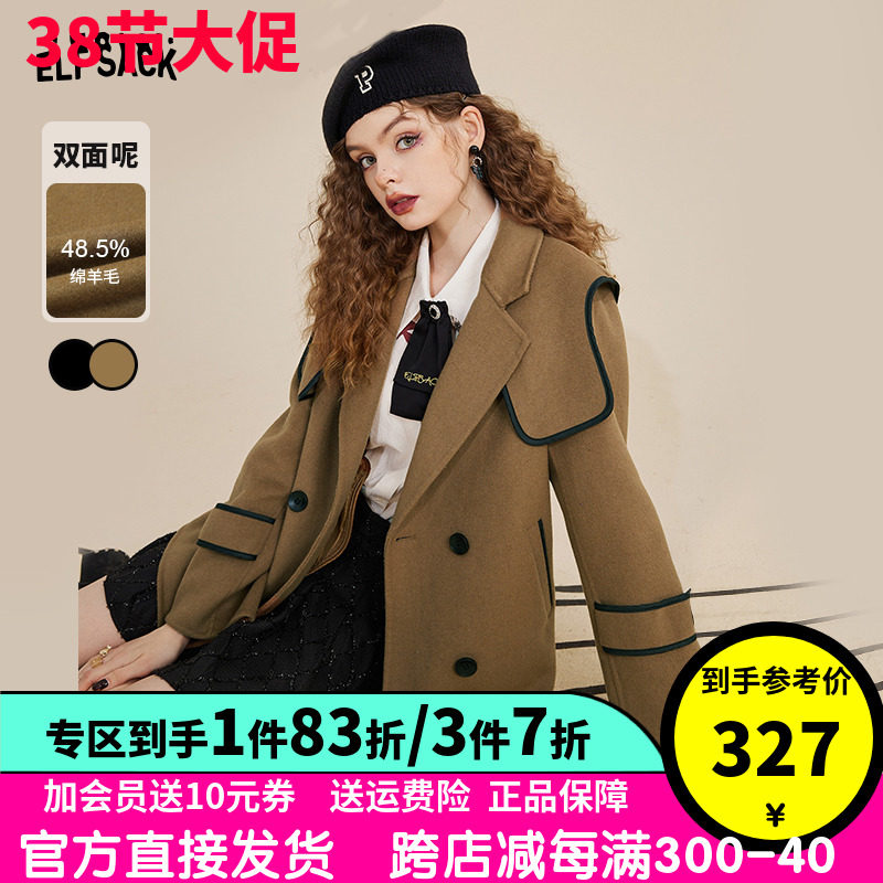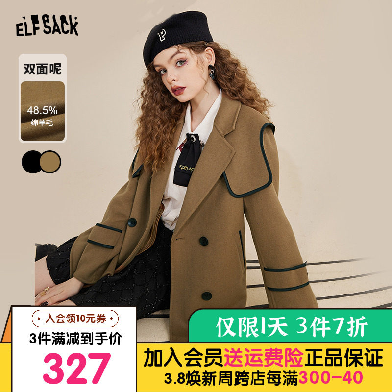妖精的口袋驼色双面呢毛呢外套女2022秋冬季新款小个子中长款大衣
