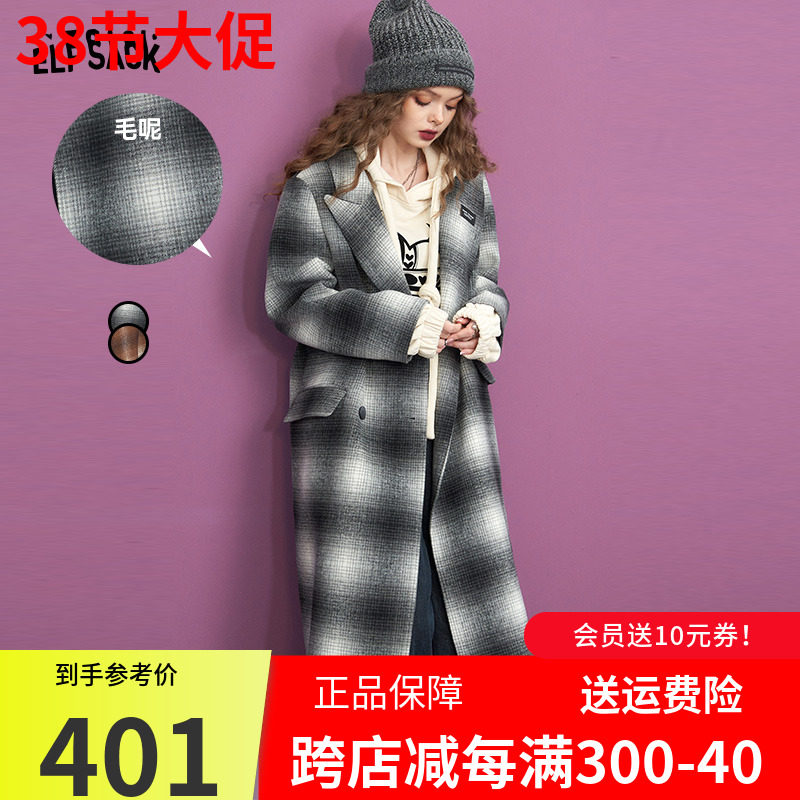 妖精的口袋格纹长款毛呢外套女2023冬季新款学院风设计感呢子大衣