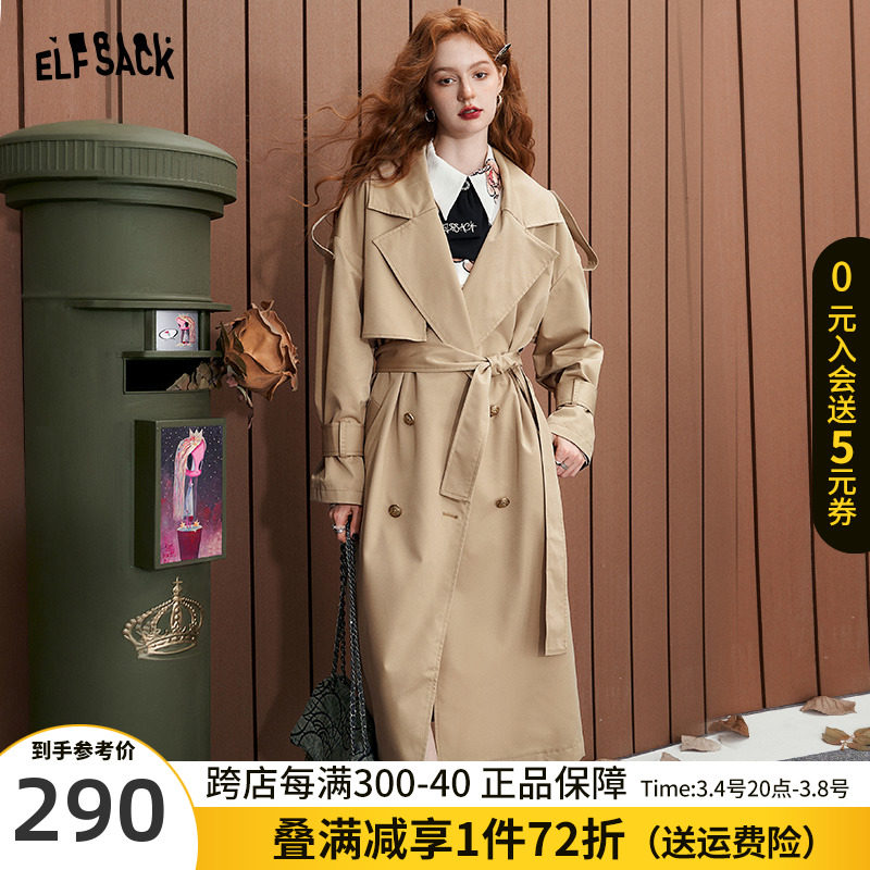 妖精的口袋长款风衣外套女2023秋季新款美拉德复古设计中长大衣