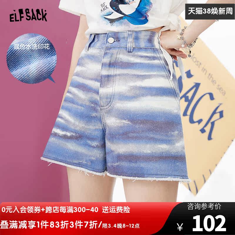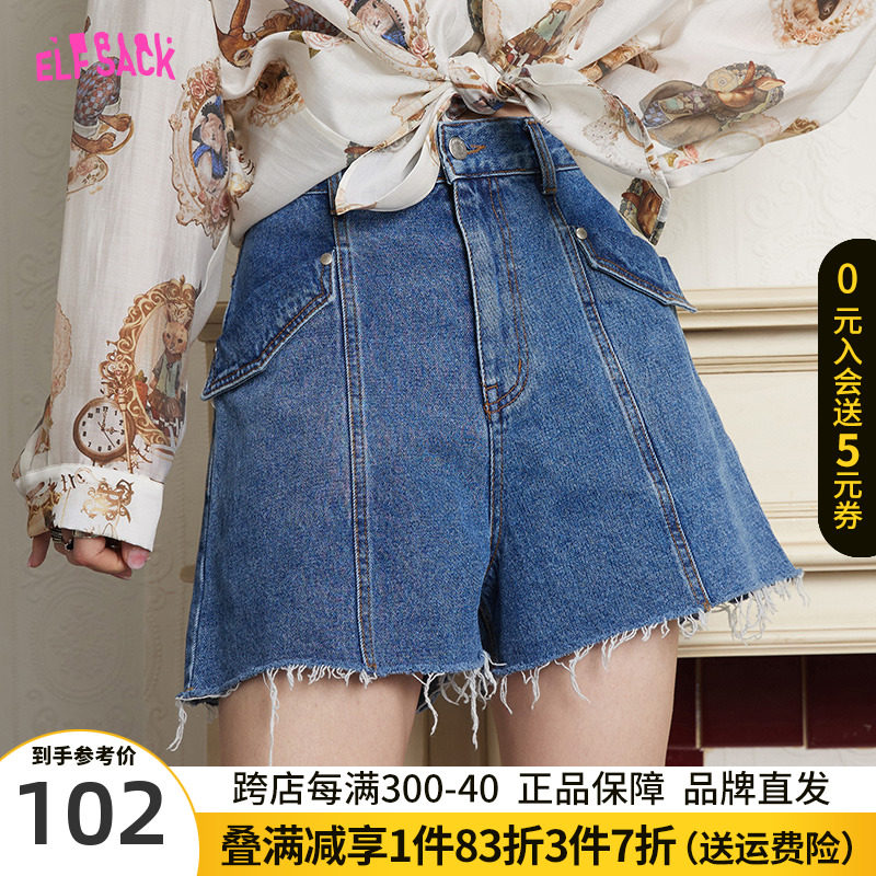 妖精的口袋混色牛仔短裤女2023夏季新款高腰显瘦薄款设计感裤子潮