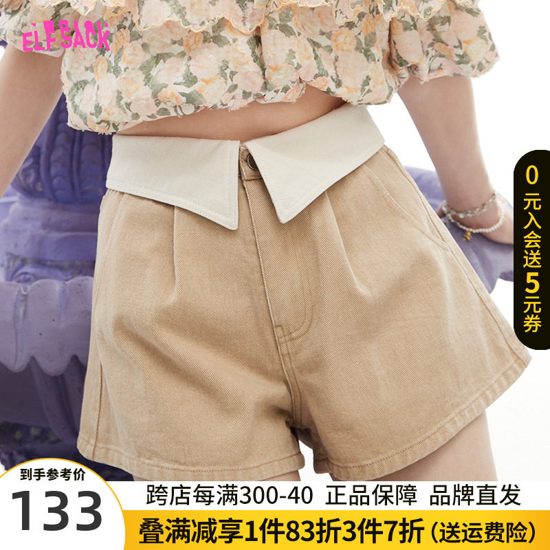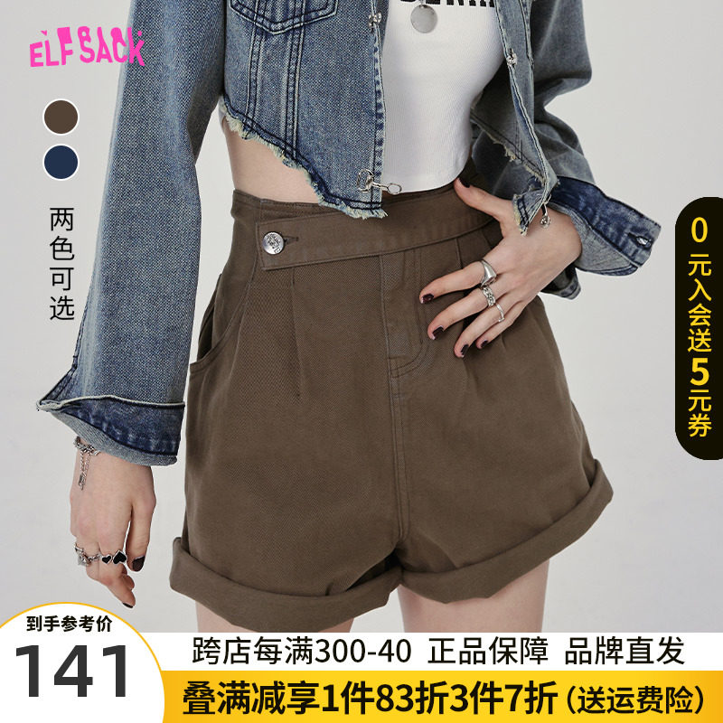 妖精的口袋翻腰休闲美式短裤女2023夏新款小个子显瘦高腰工装裤子