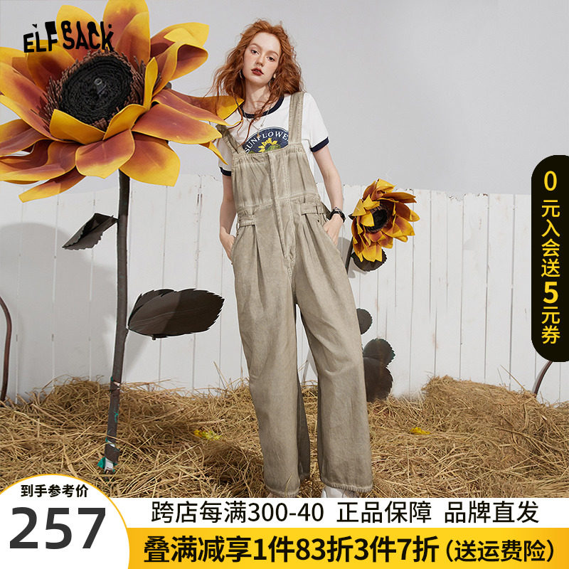 妖精的口袋复古背带牛仔裤女2023夏季新款高腰宽松显瘦阔腿裤子潮