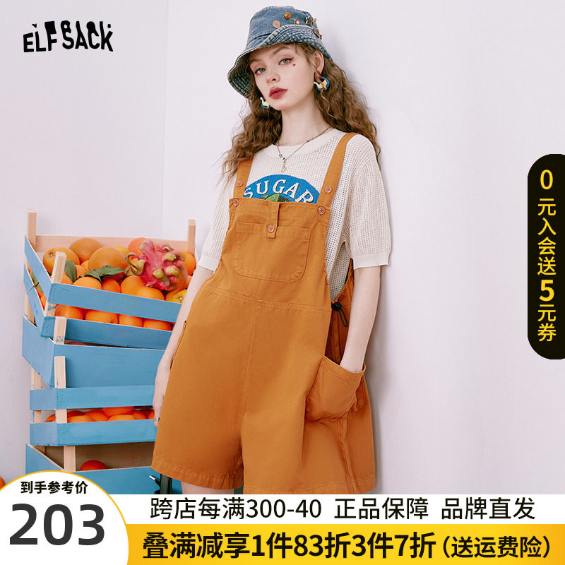 妖精的口袋工装背带裤女2023夏季新款宽松显瘦薄款直筒休闲短裤子
