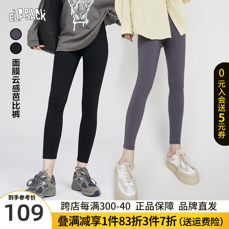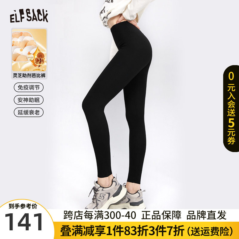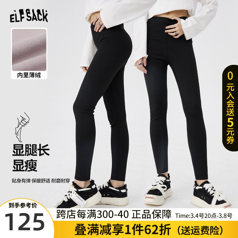 妖精的口袋黑色加绒鲨鱼裤女2024春季新款小个子显瘦高腰打底裤子