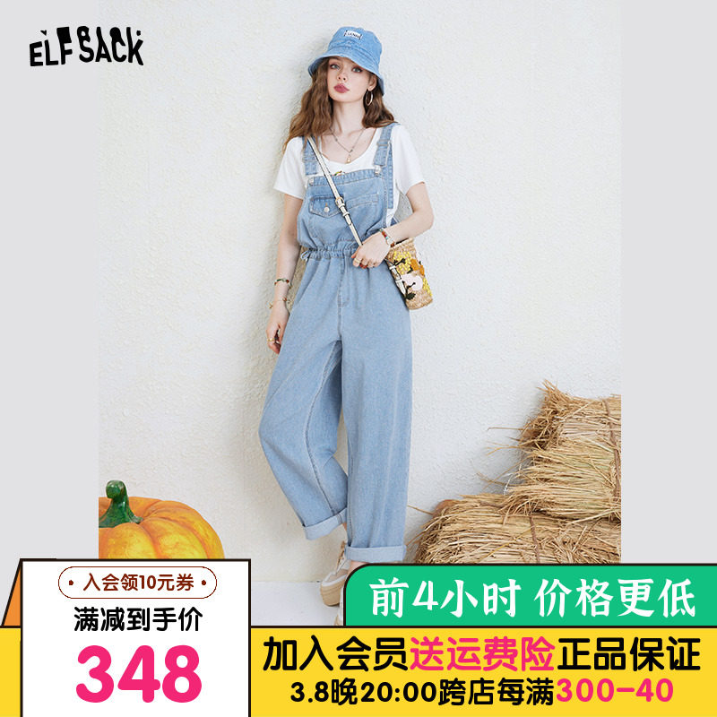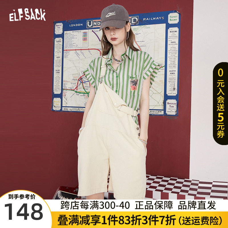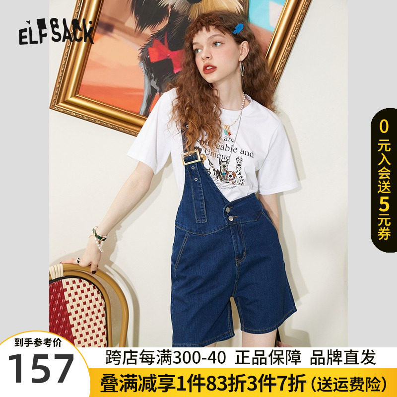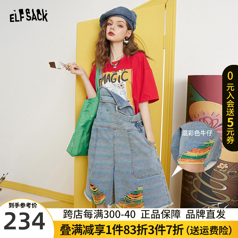 商场同款妖精的口袋牛仔背带裤女2023夏季新款短裤薄款休闲裤子潮