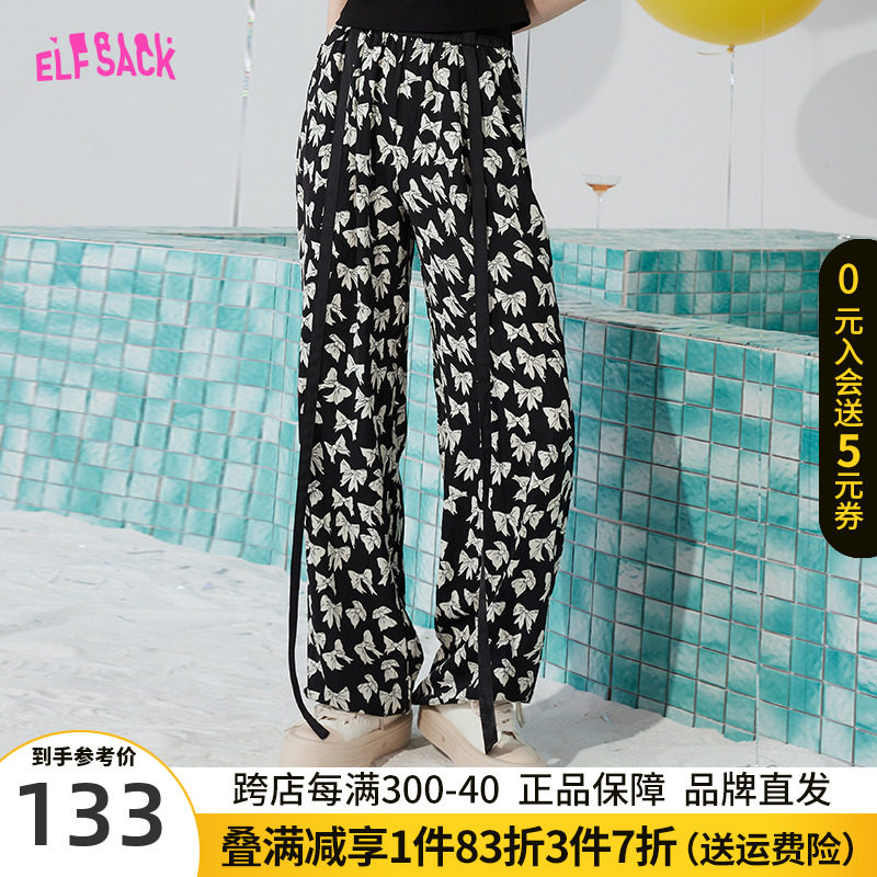 妖精的口袋蝴蝶印花香蕉裤运动裤女2024年早春新款松弛感显瘦裤子