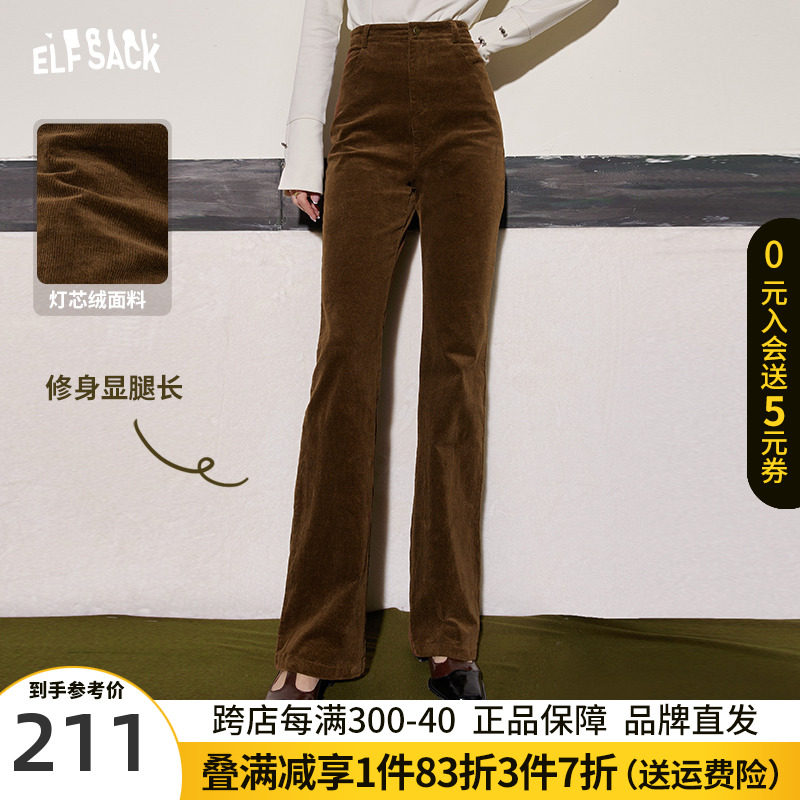 妖精的口袋美拉德灯芯绒喇叭裤女2023冬季新款高腰休闲修身长裤子