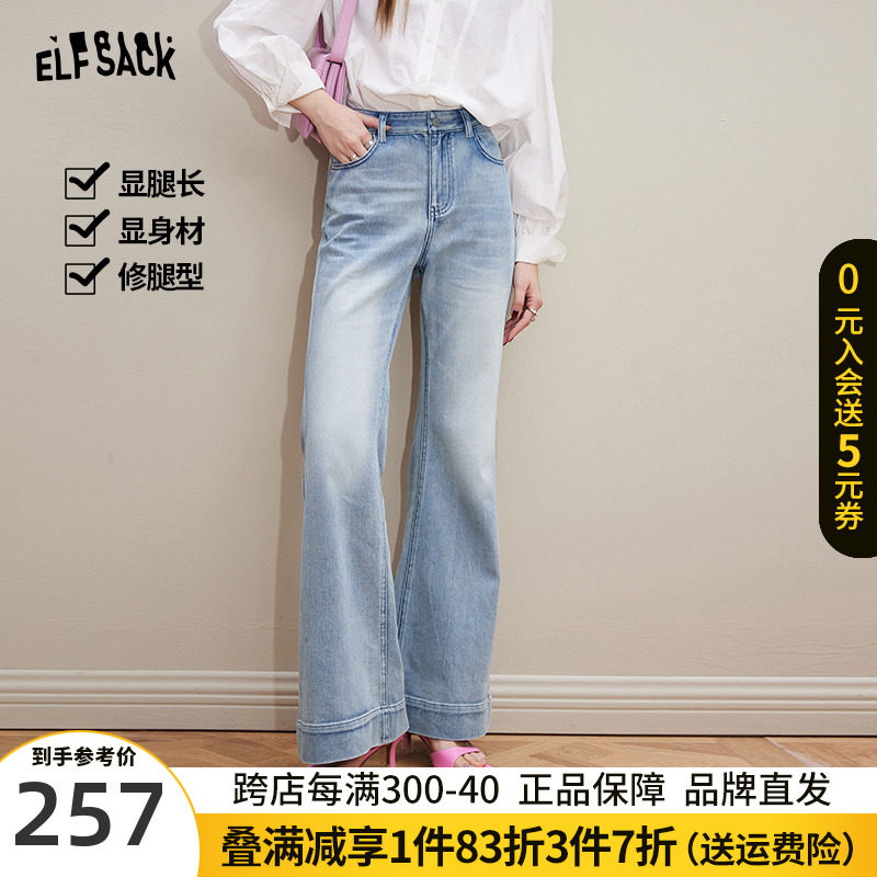 妖精的口袋浅色高腰喇叭裤牛仔裤女2024早春新款复古宽松显瘦裤子