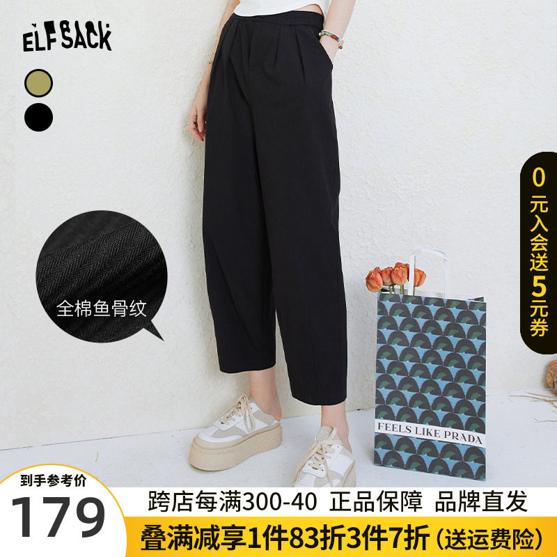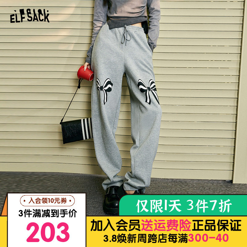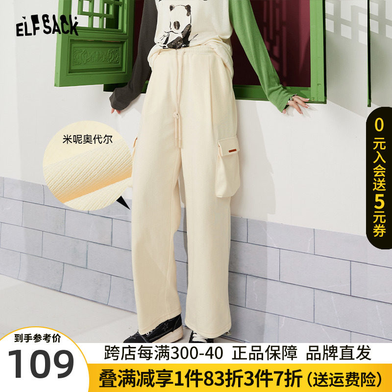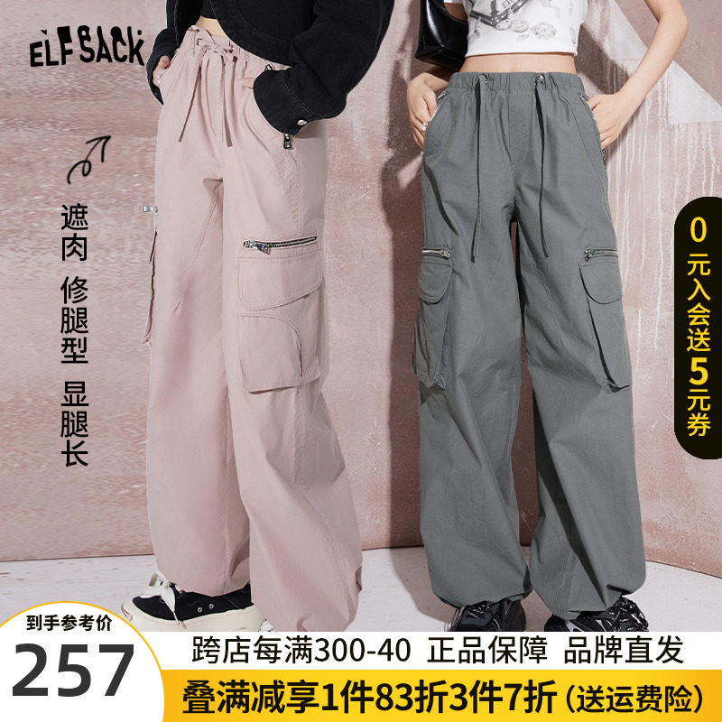 妖精的口袋宽松运动工装休闲裤女2024年早春新款抽绳直筒束脚裤子