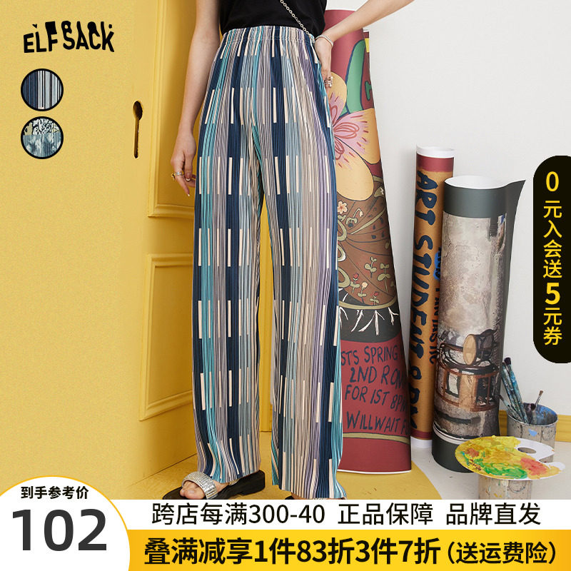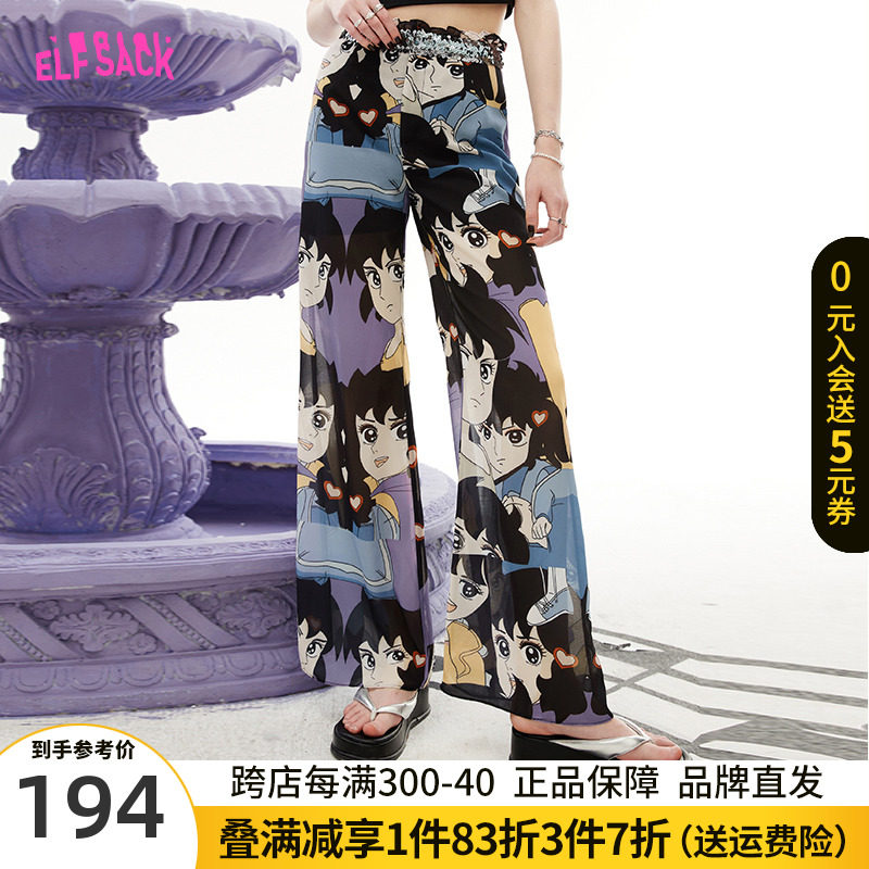 妖精的口袋满印宽松阔腿裤女2023夏季新款凉凉裤垂感薄款休闲裤子