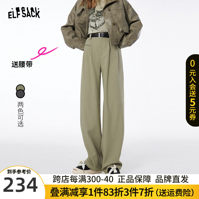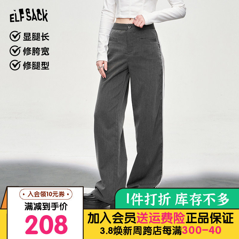 妖精的口袋黑灰色直筒西装裤女2024年早春新款宽松休闲显瘦裤子