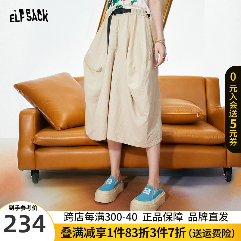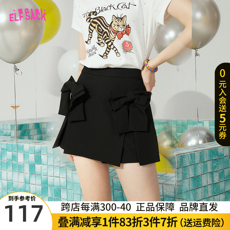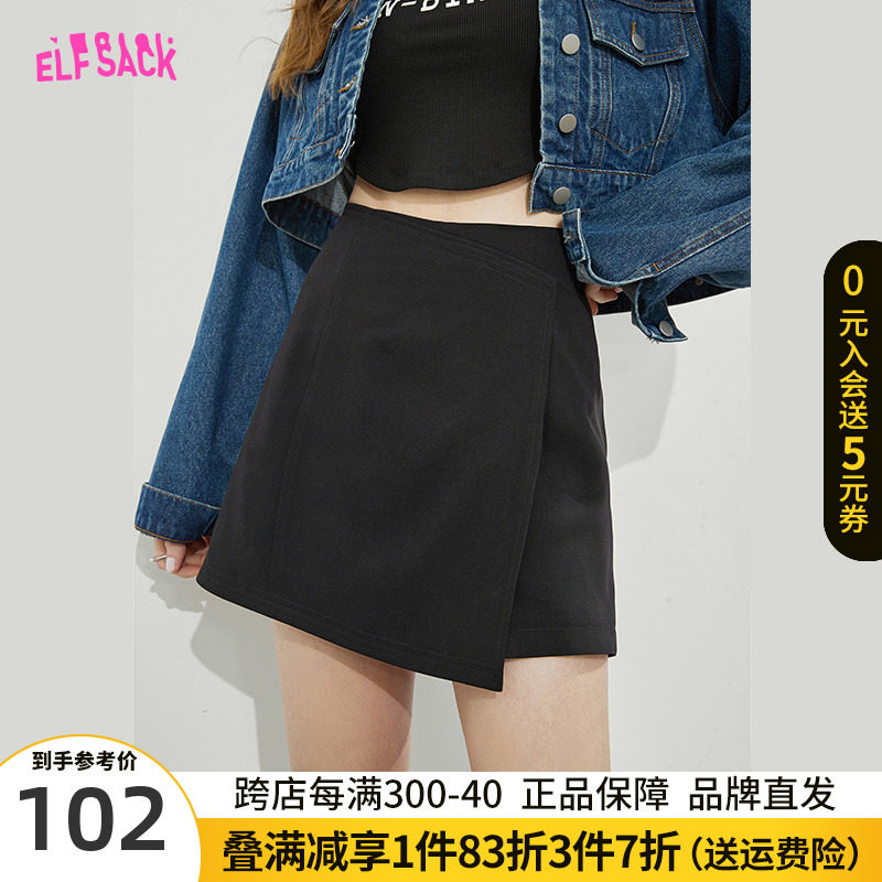 妖精的口袋黑色短裙裤女2023春夏新款小个子宽松高腰直筒休闲裤子