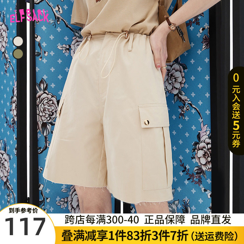 妖精的口袋美式工装短裤女2023夏季新款宽松阔腿薄款五分休闲裤子