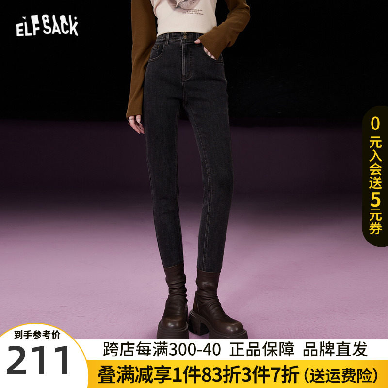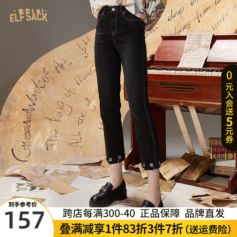 妖精的口袋黑色修身牛仔裤女2022年秋季新品时尚显瘦小脚九分裤子
